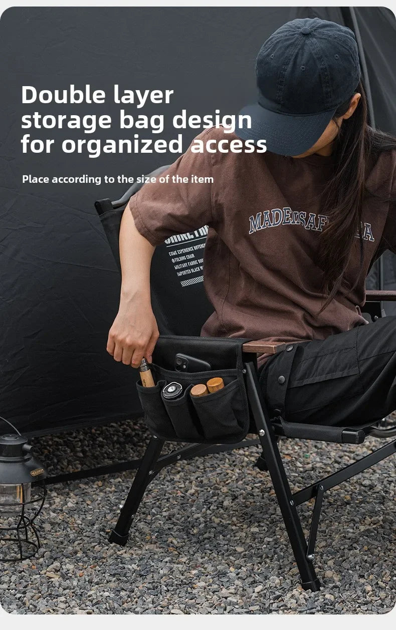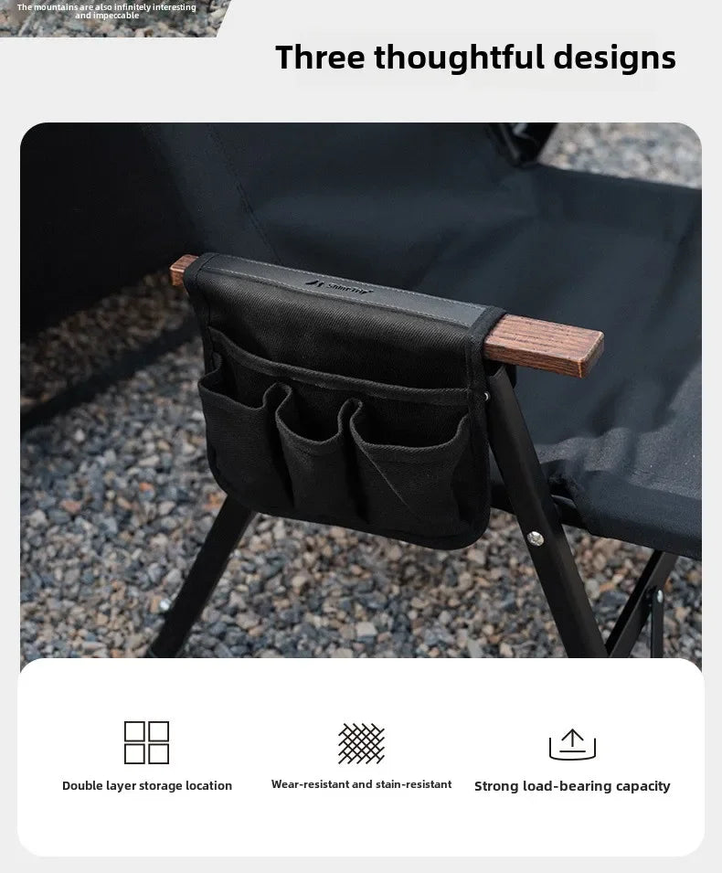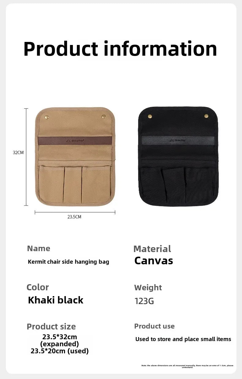 إذا كنت من عشاق الطلعات والكشتات، الجيب الجانبي هذا راح يكون رفيقك المثالي، يركب على كرسي الكيرمت بشكل سهل وسلس، ويخليك تجمع كل أدواتك الصغيرة بمكان واحد ومرتب، مثل الفانوس أو الجوال أو حتى السكين. الجيب مصنوع من قماش قوي ومتين ضد الخدش والبقع، ويتحمّل الاستخدام الثقيل بدون ما يتعب. تصميمه بطبقتين يخليك ترتّب أغراضك بحسب الحجم وتوصل لها بسرعة. يجي بلونين أنيقين: كاكي وأسود، ويتميز بزر تثبيت نحاسي عتيق يضبط الجيب بقوة وثبات. حجمه مناسب وما ياخذ مساحة، بس يعطيك فرق كبير بالتنظيم.