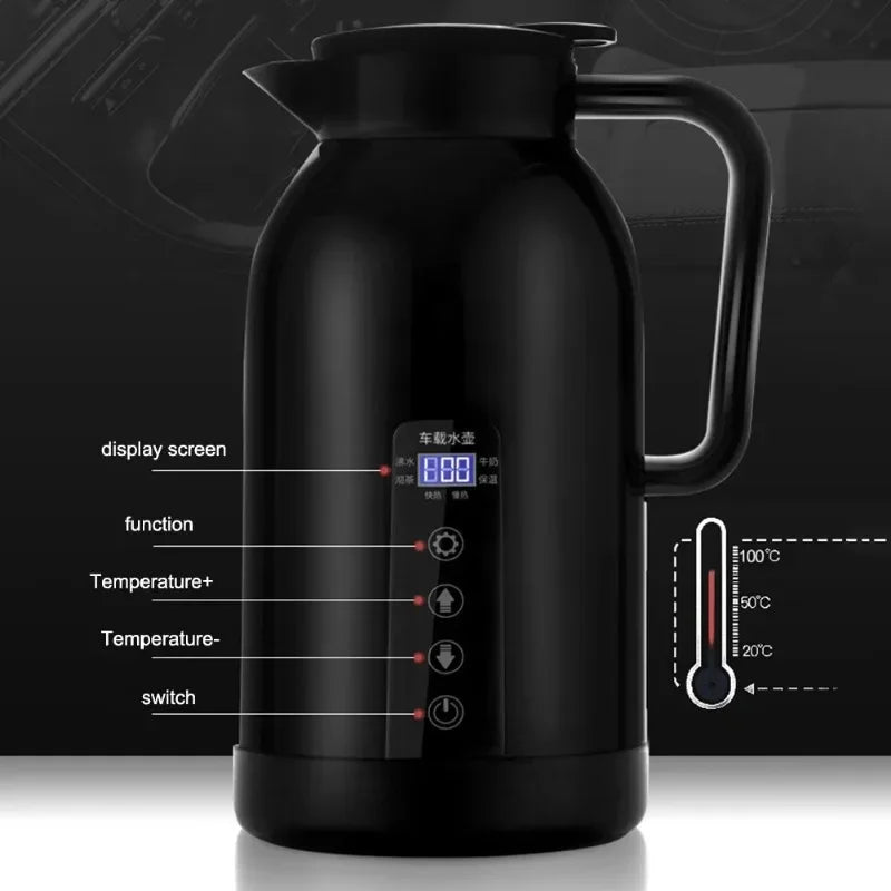 غلاية ماء كهربائية للسيارة مع شاشة ذكية وتحكم حراري 1300 مل