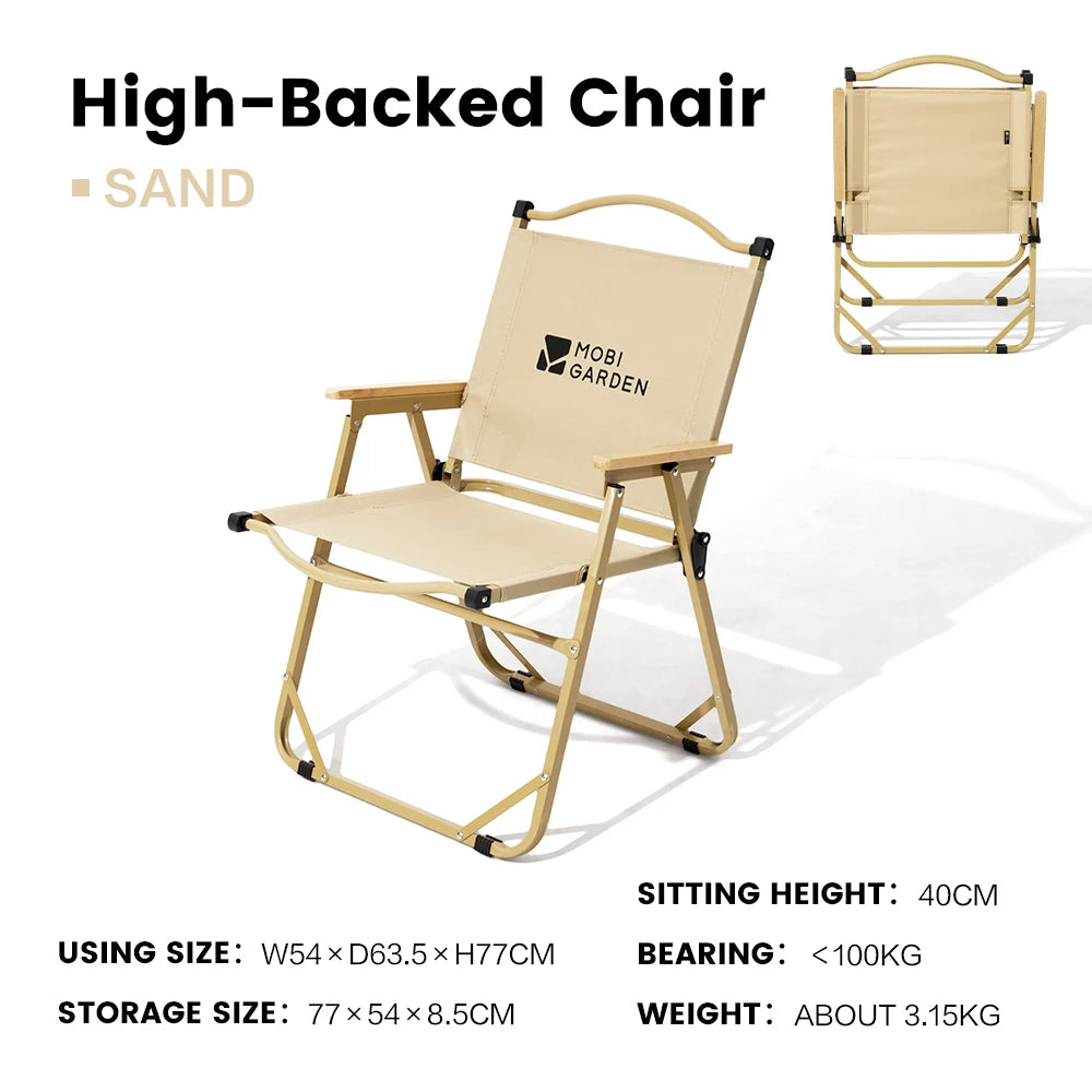 هذا الكرسي بيكون مقعدك المفضل في البر أو على الشاطئ أو حتى في الحديقة. تصميمه مريح وخفيف بوزن تقريبًا 2.55 كجم، وسهل الطي والنقل، يعني ما يحتاج تشيل هم المساحة في السيارة. هيكله مصنوع من الفولاذ الكربوني المتين ويتحمل لحد 100 كجم، والمقعد من قماش أكسفورد 300D المزدوج اللي يجمع بين المتانة والتهوية عشان تجلس براحة حتى مع الجلسات الطويلة. متوفر بخيارين: ظهر عالي وظهر منخفض، عشان تختار اللي يناسب طولك وراحتك. مساند الذراعين من خشب طبيعي يعطي إحساس دافي ولمسة أنيقة، ويخليك تستمتع بفنجان القهوة وانت تشوف غروب الشمس أو تسمع أصوات الطبيعة.